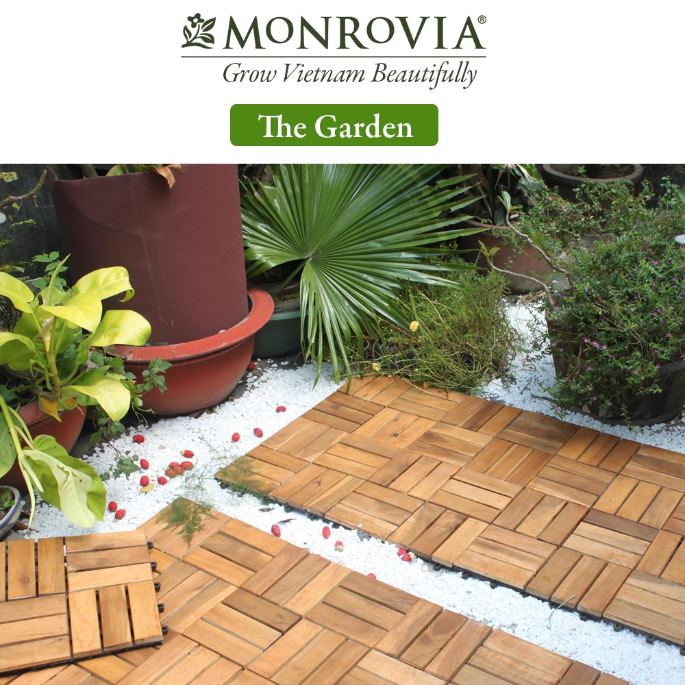 Nhà cửa & Đời sống > Làm vườn > Trang trí vườn || Vỉ gỗ lót sàn MONROVIA, gỗ tự nhiên cho ban công, ngoài trời, sân vườn, siêu bền, tiêu chuẩn Châu ÂuCòn hàng
