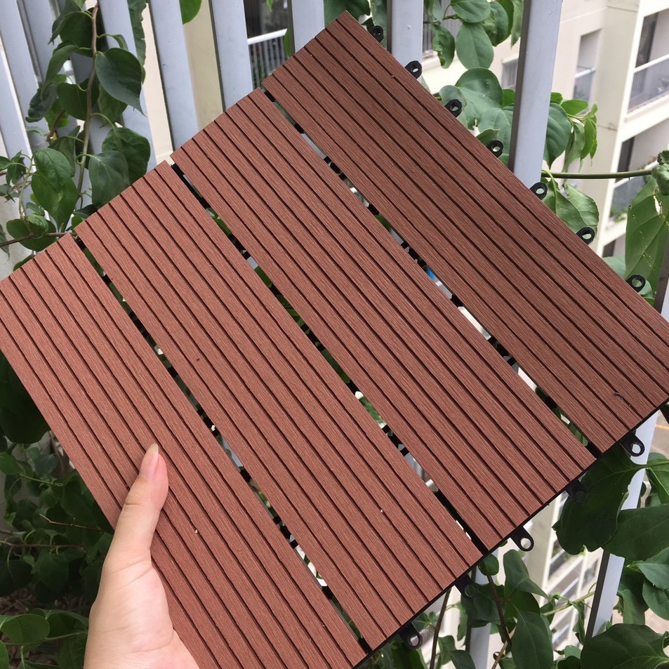 Vỉ gỗ nhựa lót sàn thích hợp dùng trang trí ngoại thất như: ban công, tiểu cảnh sân vườn và những khu có tiếp xúc nhiều với nước để hạn chế trơn trượt.Chi tiết: