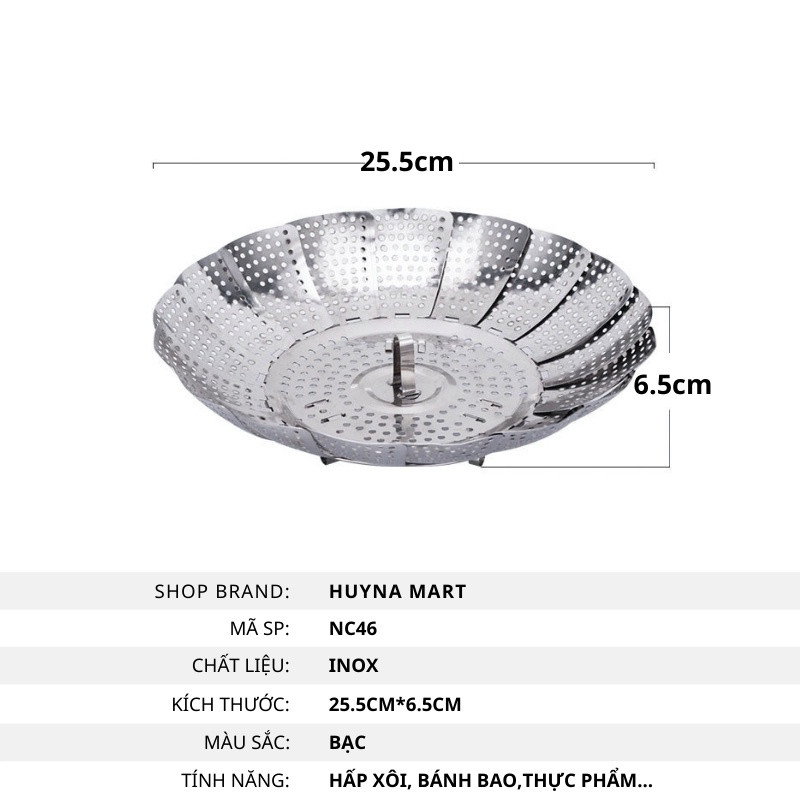 Vỉ Hấp Đa Năng, Xửng Hấp Xôi Inox Cao Cấp, Xòe Cánh, 3 Chân Vừa Mọi Kích Thước Huyna Mart NB74Thông tin sản phẩm: