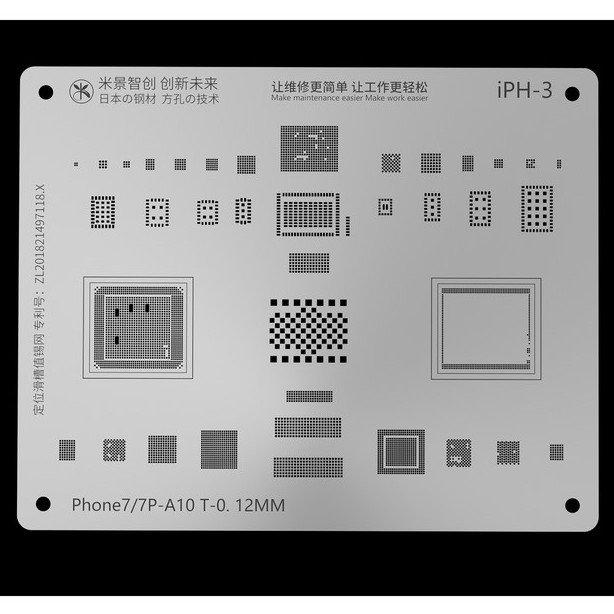 Vỉ làm chân cho iPhone 7/ 7P đủ icVỉ được làm chính xác tuyệt đối lỗ vuông dễ làm, tiêu chuẩn 0.12mm