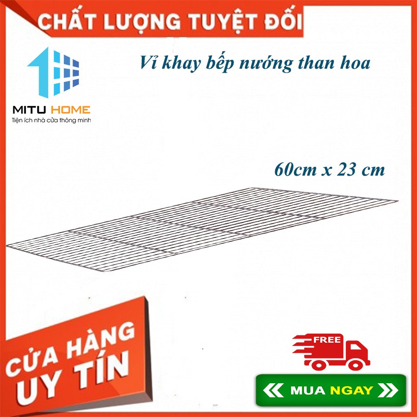 Vỉ khay bếp nướng than hoa loại 60cm x 23 cm - MITUHOMEChuyên dùng cho nướng than hoa, nướng thịt, làm bún chả rất tiện dụng dẽ lau chùi và bảo quản. Phù hợp cho mọi gia đình, nhà hàng hay những chuyến đi dã ngoại.