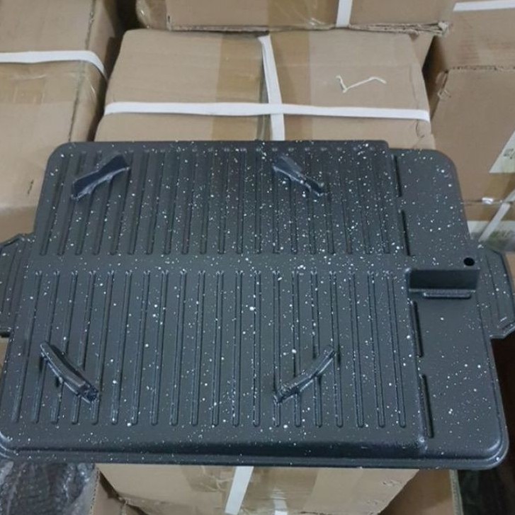 Vỉ, Khay nướng BBQ Hàn Quốc Kitchen Flower bằng gang có tay cầm giữ nhiệt tốt