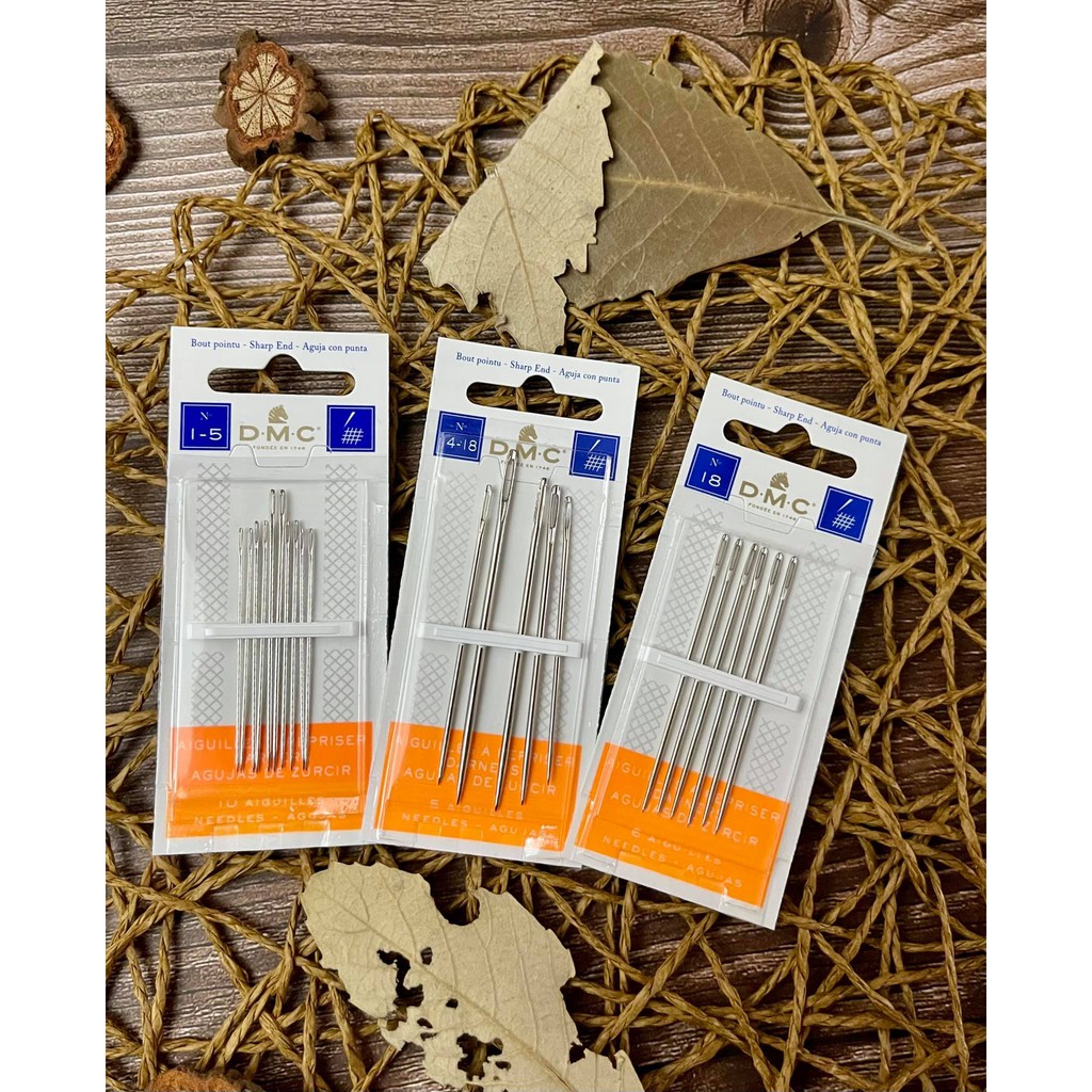 Kim thêu trong một gói số lượng như hình và size theo từng phân loại. Với đầu nhọn, những kim thêu này sẽ dễ dàng khâu hầu hết các loại vải và có thể được sử dụng với các đường chỉ thêu DMC Nhãn hiệu Cotton, Cotton Pearl và Coton ą Broder.Giá PTS