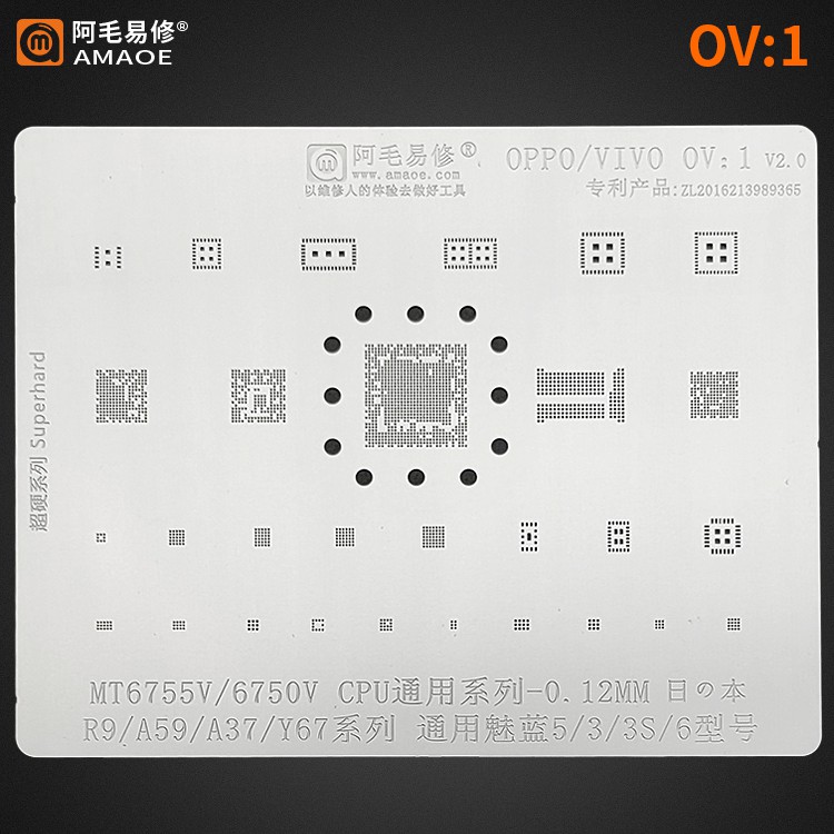 Vỉ làm chân Oppo/Vivo mã OV:1 hỗ trợ các máy CPU MT6750V/ MT6755VVà các ic trên các máy Oppo R9, A59, A37, Vivo Y67, Oppo A71 MTK