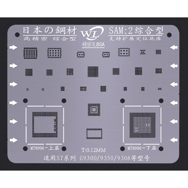 Vỉ làm chân cho Samsung S7 & S7 edge từ hãng WLVỉ làm chân tiêu chuẩn dày 0.12mm, lỗ vuông và độ chính xác cao, dễ thao tác.