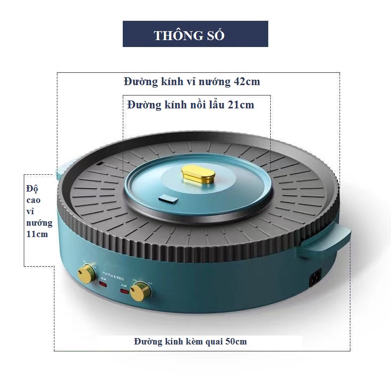 💥💥💥LẨU VỈ NƯỚNG XANH 2 ĐIỀU KHIỂN-Công suất: 1500w