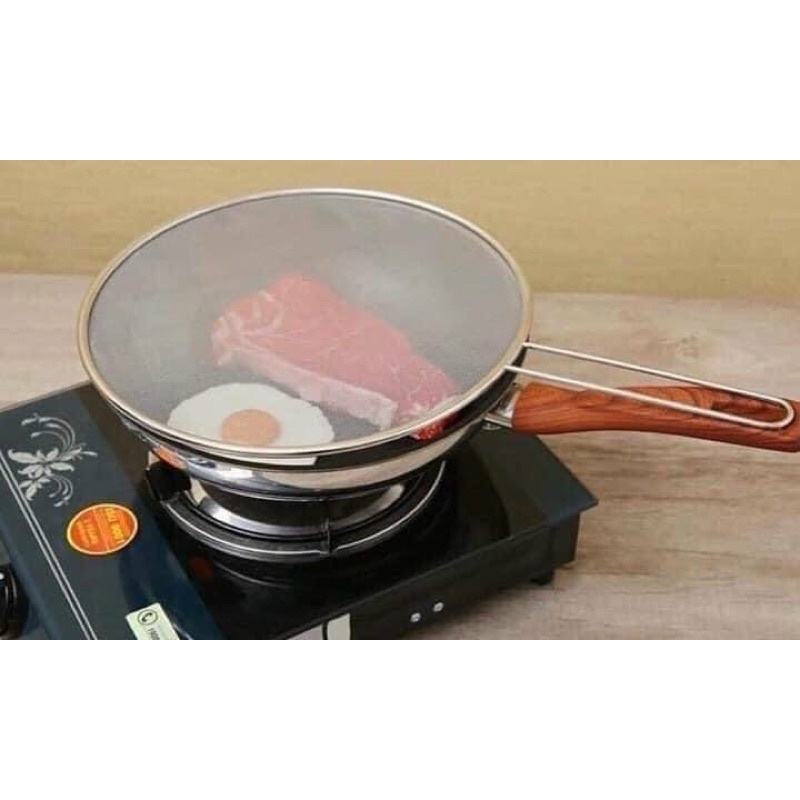 Nhà cửa & Đời sống > Dụng cụ nhà bếp > Chảo || Vỉ Lưới Đạy Nắp Chảo, Nôi, Xoong Chống Văng Dầu Mỡ Tay Cầm INOX HÀN QUỐC - B023 size 29Còn hàng