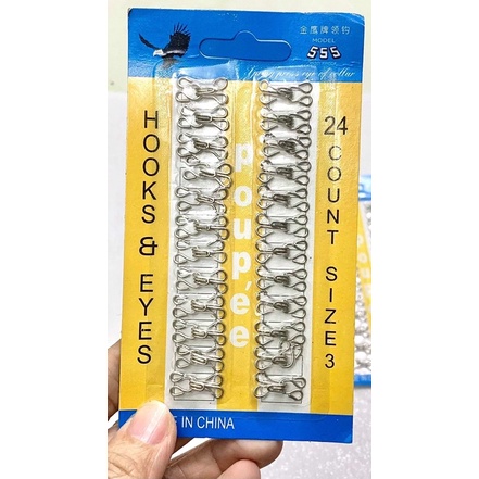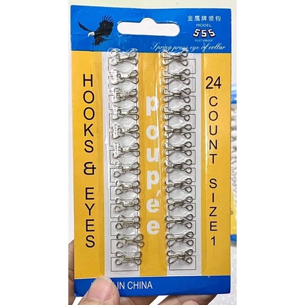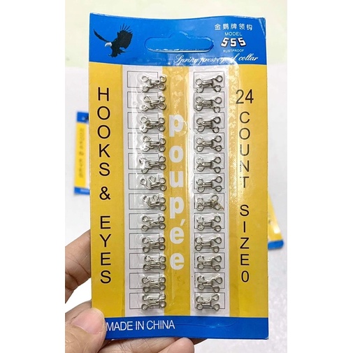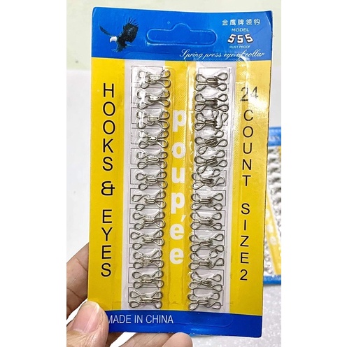 1 vỉ móc gồm 24 móc cùng 1 size. Có rất nhiều size từ số 0 đến số 4, màu đen và trắng.Size số 0 dùng cho áo dài.