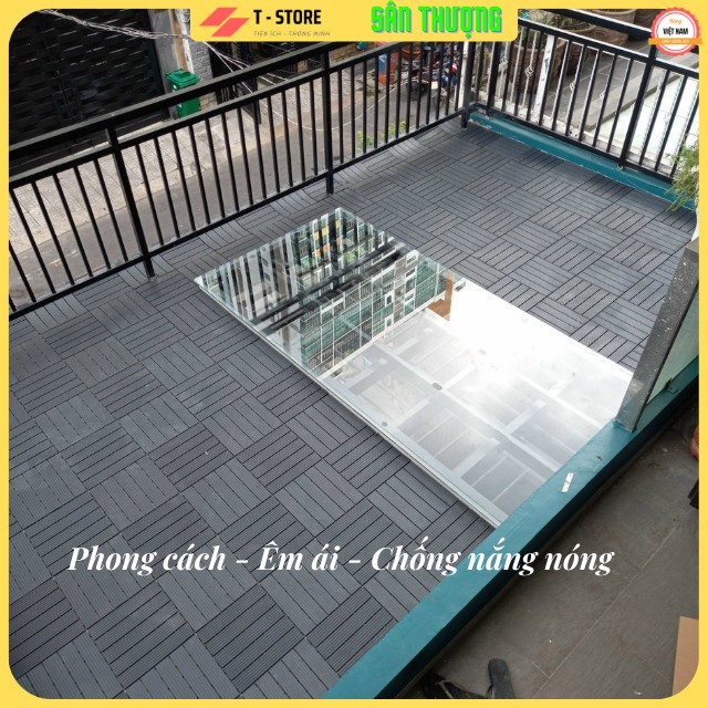 + Kích thước vỉ nhựa tiêu chuẩn 30cm x 30cm nhưng độ dầy được cải thiện còn 1.1cm phù hợp hầu hết với của ban công mà không lo chạm cửa khi đóng mở