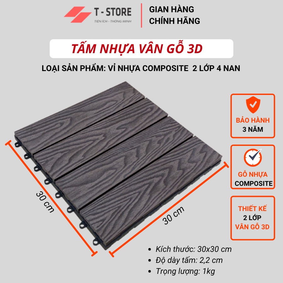 ✔ Vỉ lát sàn cao cấp T-STORE bên trên là loại sàn ngoài trời với độ bền cao trên 30 năm.
