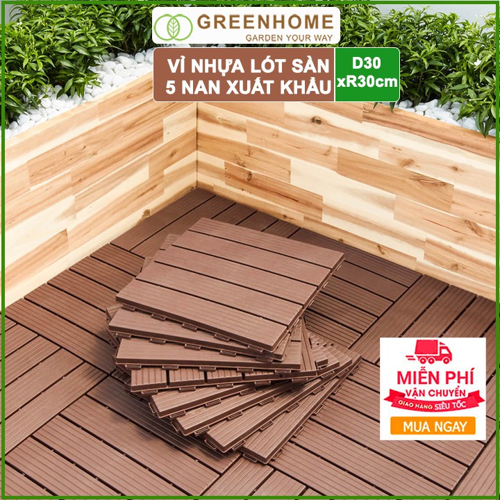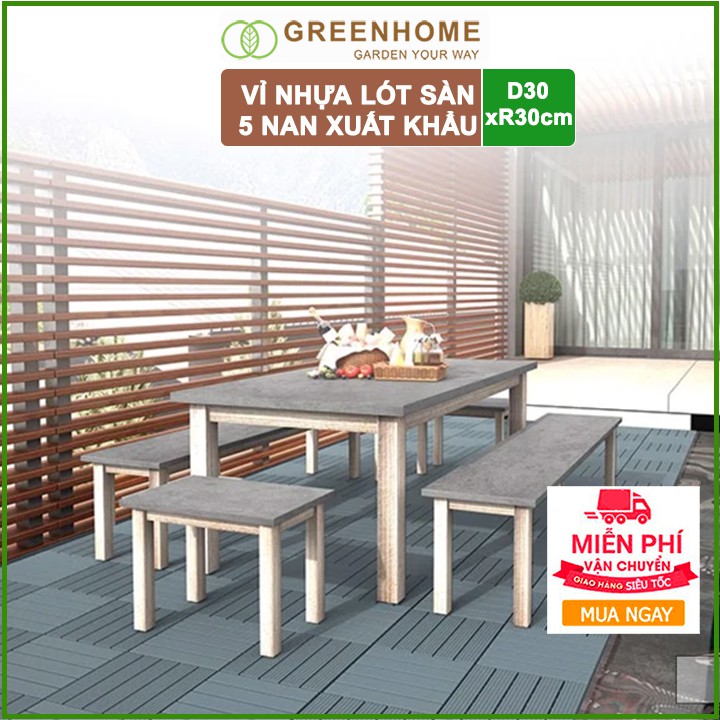 Nhà cửa & Đời sống > Làm vườn > Trang trí vườn || Vỉ nhựa lót sàn, D30xR30xC2cm, 5 nan, màu Xám, hàng xuất khẩu, dễ lắp đặt, lót ban công, sân vườn, hồ bơi |GreenhomeCòn hàng