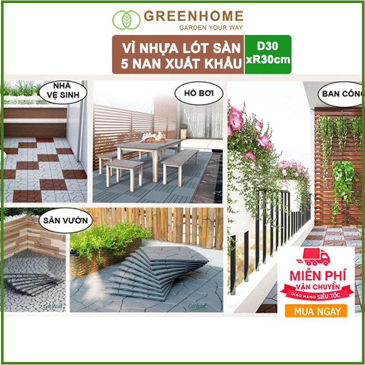 Giới thiệu Vỉ nhựa lót sàn, D30xR30xC2cm, 5 nan, màu Xám, hàng xuất khẩu, dễ lắp đặt, lót ban công, sân vườn, hồ bơi |Greenhome