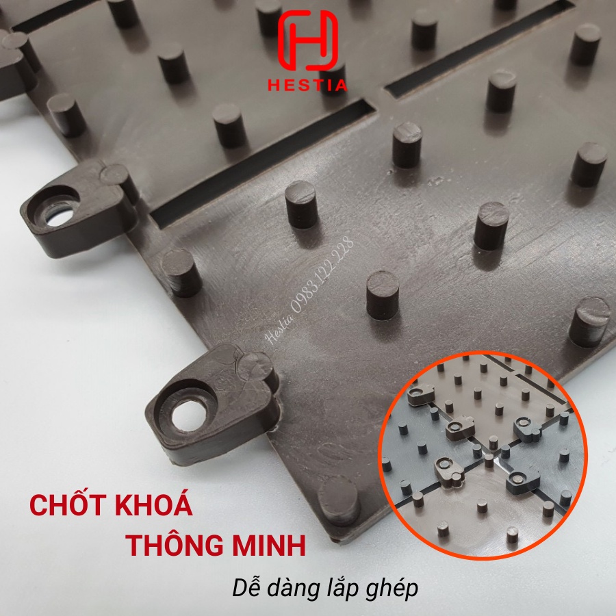 + Các chân tròn của bề mặt bên dưới giúp thoát nước nhanh chóng, khắc phục hiện tượng chậm thoát nước ở những vỉ nhựa có cấu trúc đế kiểu cũ