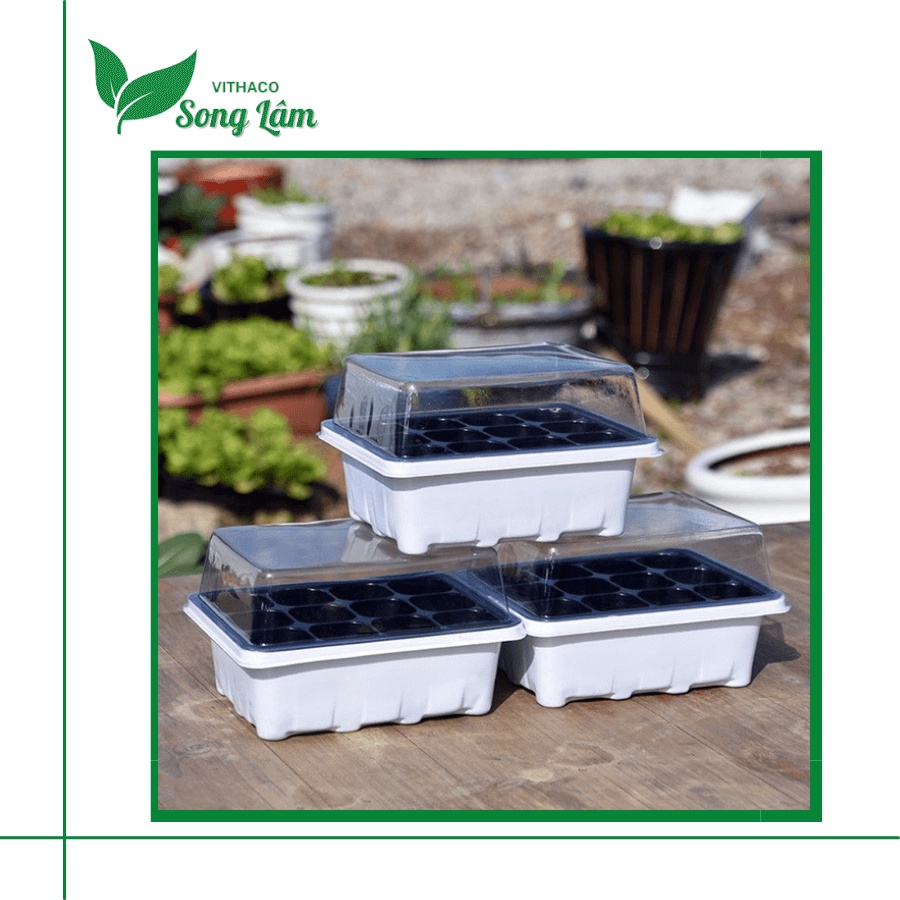 Vỉ nhựa ươm hạt giống 12 lỗ có nắp đậy kèm khay hứng nước