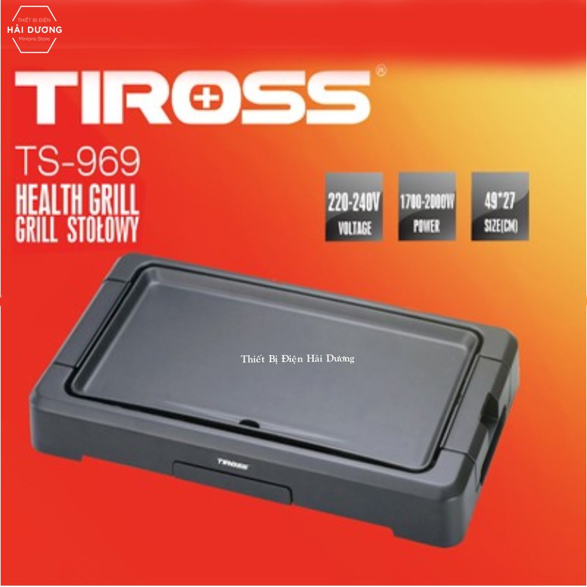 Vỉ Nướng Điện Đa Năng Để Bàn TIROSS TS-969 Hàng chính Hãng - Công suất 2000w - Bảo hành 1 năm