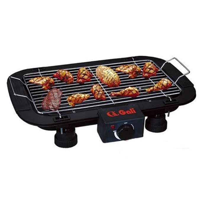 Giới thiệu Vĩ nướng điện GL-5000 (Đen)Chiếc bếp được cấu tạo khá đơn giản với 4 bộ phận: khay nướng, vỉ nướng, cụm điện trở và khay hứng mỡ. Với ưu điểm mặt vỉ nướng chống dính chất lượng cao, có rãnh giúp giảm bớt lượng dầu mỡ thừa, chiếc bếp nướng này cho bạn những món nướng không chỉ thơm ngon sạch sẽ mà còn không gây hại cho sức khỏe. Chân bếp làm bằng nhựa có khả năng cách điện nên có thể đặt bếp ở nhiều nơi, thậm chí ngay trên bàn kính. Ưu điểm nổi bật của bếp nướng là lượng khói sinh ra được hạn chế tối đa.