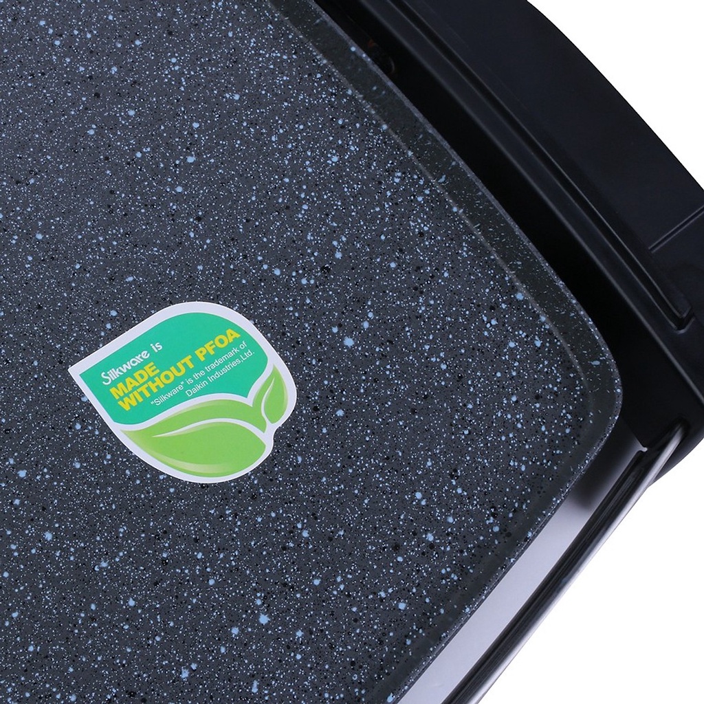 - Vỉ nướng điện Lock&Lock được phủ lớp chống dính chất lượng cao nhập khẩu từ Nhật Bản, không có chứa chất độc hại PFOA, an toàn cho sức khỏe, đồng thời cũng tiết kiệm thời gian khi chùi rửa.