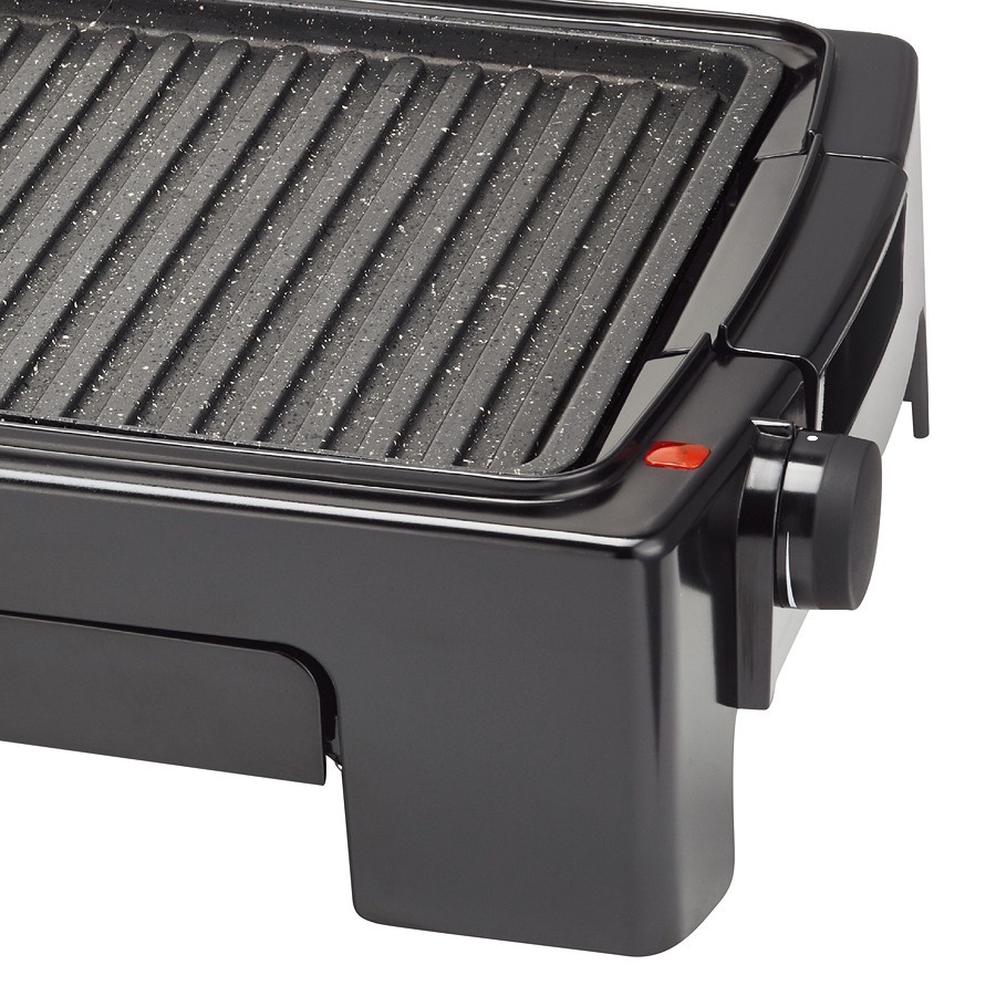 Bề mặt vỉ có lỗ thoát dầu và bên dưới có ngăn hứng dầu, giúp dễ dàng loại bỏ dầu mỡ thừa khi đang nướng. Vỉ nướng được đính kèm theo giá đỡ, giúp nâng một bên vỉ nướng (bên cắm bộ điều nhiệt) cao hơn bên còn lại (bên có lỗ thoát dầu) để dầu mỡ có thể dễ dàng chảy về phía lỗ thoát dầu, vừa mang lại món ăn ngon, vừa đảm bảo an toàn sức khỏe cho bạn và những người thân trong gia đình.