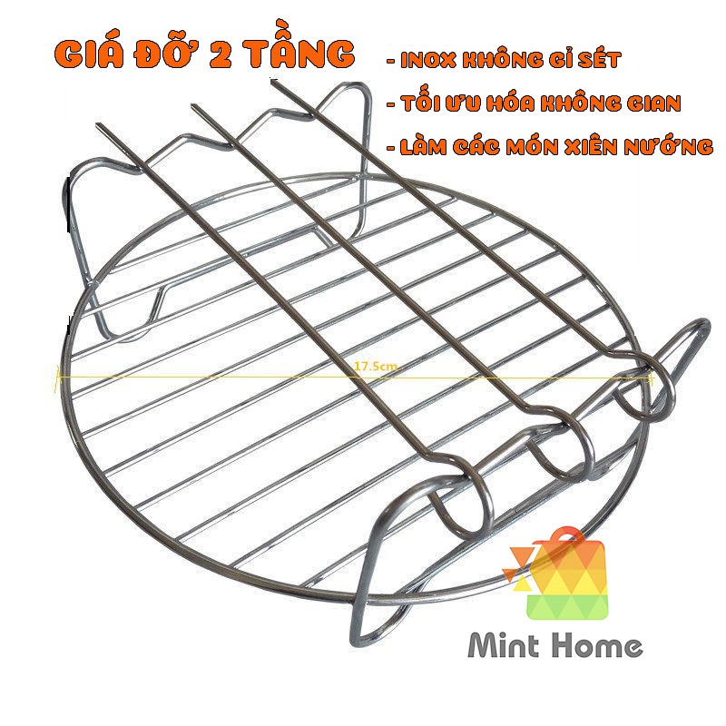 Vỉ nướng inox 2 tầng có kèm xiên nướng thịt - hàng tách lẻ từ bộ phụ kiện nồi chiên không dầu koBạn đang sử dụng nckd, và đang loay hoay vì một tầng nướng quá ít, làm mất thời gian chờ đợi tới mẻ đồ nướng khác của bạn?