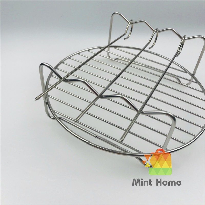 Vỉ nướng inox 2 tầng có kèm xiên nướng thịt - hàng tách lẻ từ bộ phụ kiện nồi chiên không dầu ko