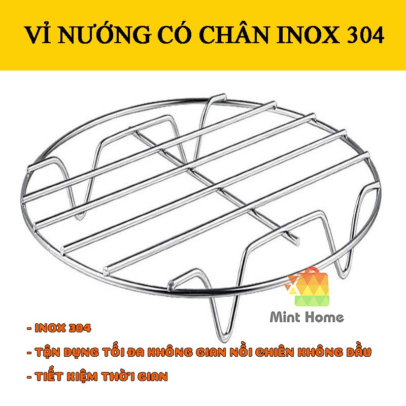 Nhà cửa & Đời sống > Dụng cụ nhà bếp > Lò nướng & phụ kiện || Vỉ nướng inox 304 loại tròn có chân - hàng tách lẻ từ bộ phụ kiện nồi chiên không dầuCòn hàng
