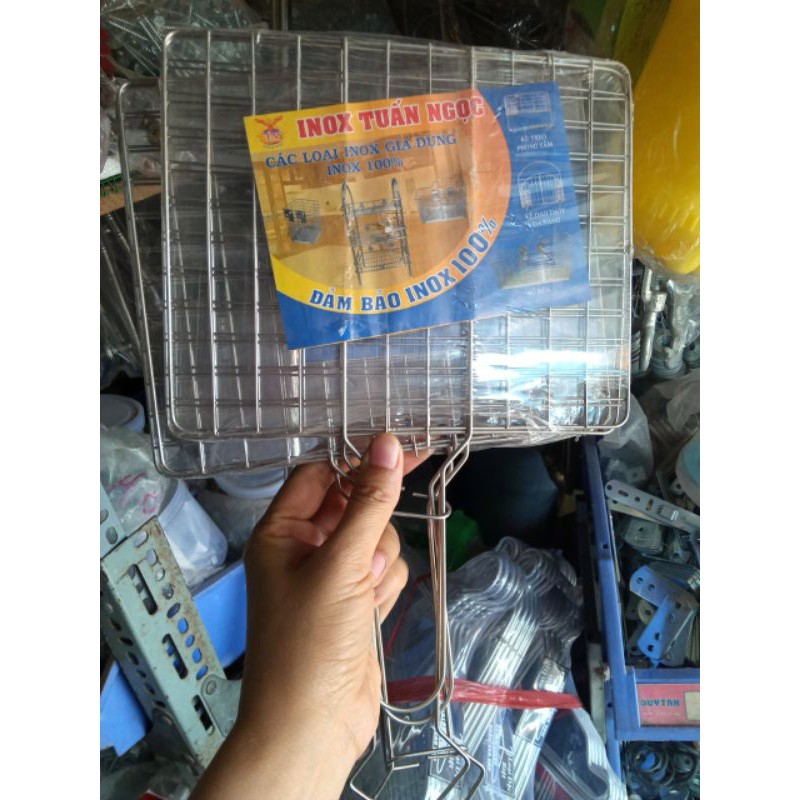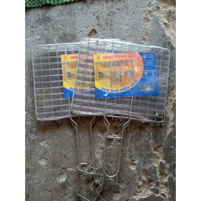 Vỉ Nướng Inox Hai Mặt Có Tay Cầm● Vỉ nướng inox làm từ inox bền bỉ, hạn chế rỉ sét, vỉ nướng có 2 mặt dễ dàng kẹp chặt thức ăn khi nướng, tay cầm dài hạn chế bỏng, nóng khi chế biến thức ăn