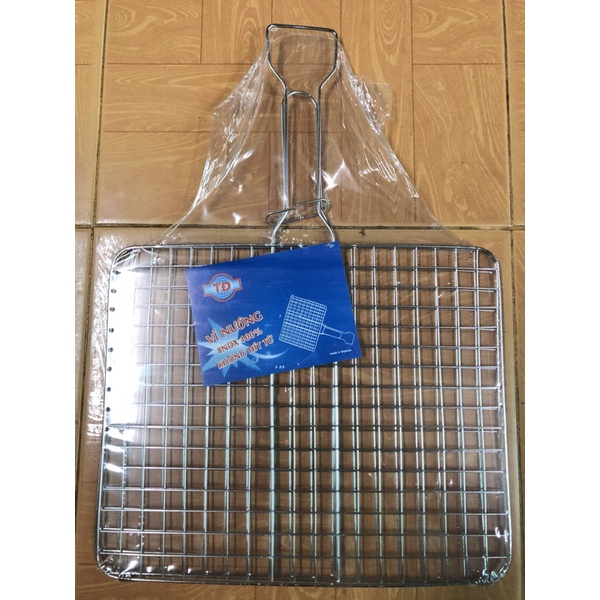 Vĩ nướng inox hai mặt kẹp đồ nước ở giữa xoay nướng hai mặt tiện dụngChất liệu: thép không ghỉ inox 304