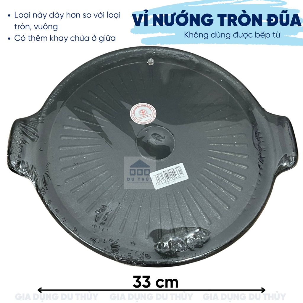 - Vỉ nướng men gang chống dính hình vuông, hình tròn có khay hứng dầu mỡ nhỏ gọn tiện dụng