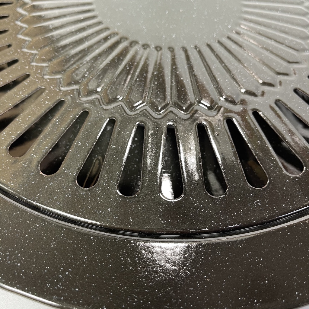 - Vỉ nướng tráng men chống gỉ và chống dính, giúp sản phẩm bền và sang trọng, không bị ăn mòn bởi thức ăn, các loại nước tẩy rửa và nhiệt độ cao theo thời gian