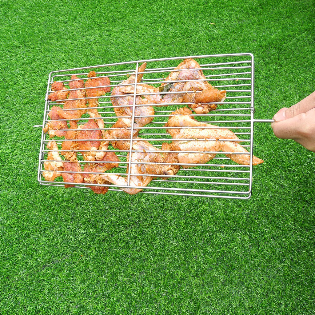 Vỉ được làm 100% INOX chịu nhiệt chống gỉ với độ dày cao rất cứng cáp có thể nướng các loại thực phẩm như gà, vịt, chả, sườn…