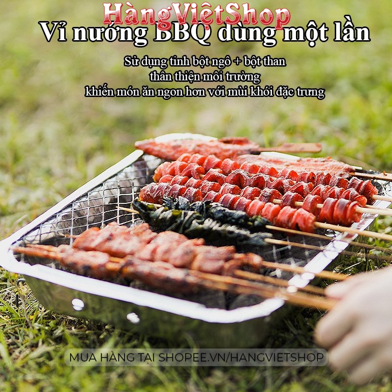 Vỉ nướng than BBQ dùng 1 lần, bếp nướng thịt đi du lịch dã ngoại picnic ngoài trời