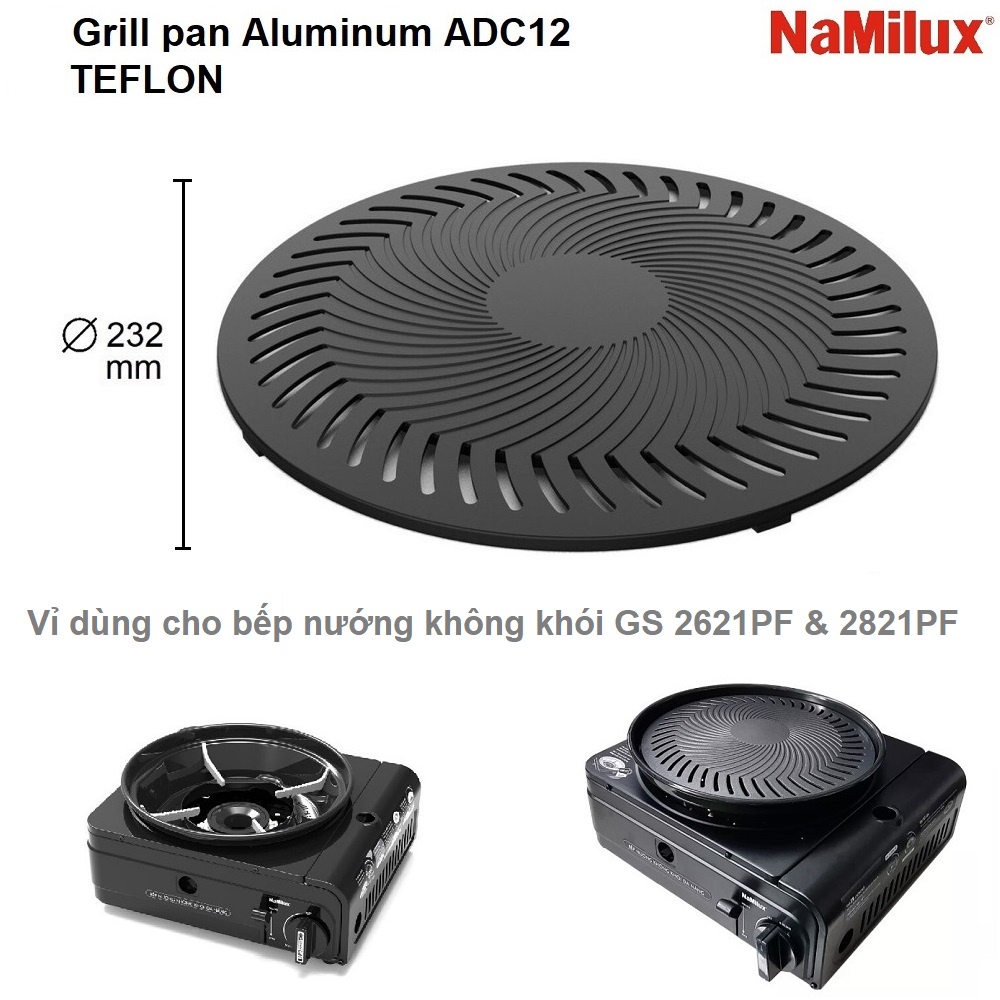 Giới thiệu Vỉ nướng tròn tặng kèm cây nâng vỉ Namilux dùng cho bếp đa năng 2621PF