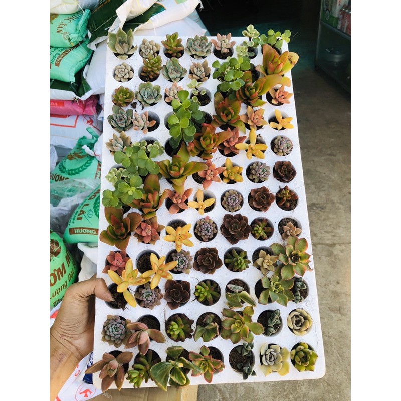 Nhà cửa & Đời sống > Làm vườn > Cây cảnh || Vỉ sen đá 84 cây (mix 12-18 loại sen đá)Còn hàng