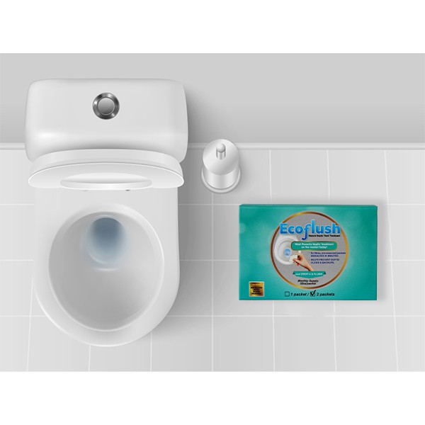 👉 Chỉ cần thả 1 gói EcoFlush đã được định lượng sẵn vào bồn cầu và xả nước