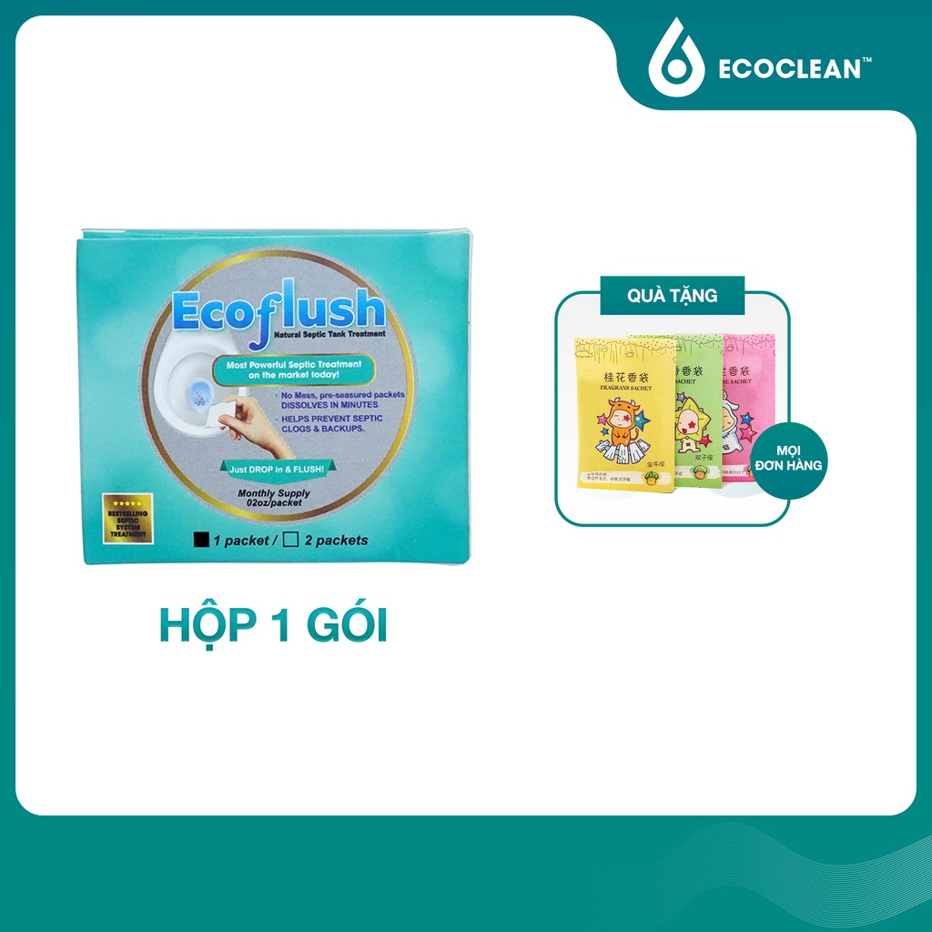 Vi Sinh Xử Lý Bồn Cầu, Bể Phốt Đầy, Tràn - EcoFlush Hộp Nhỏ - Túi Gói Sinh Học Tự Huỷ
