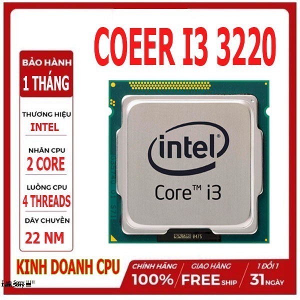 Máy tính & Laptop > Linh Kiện Máy Tính > CPU - Bộ Vi Xử Lý || VI SỬ LÝ CPU CORE i3-3220 (3M 3.3Ghz) SK 1155 TẶNG KEO TẢN NHIỆTCòn hàng