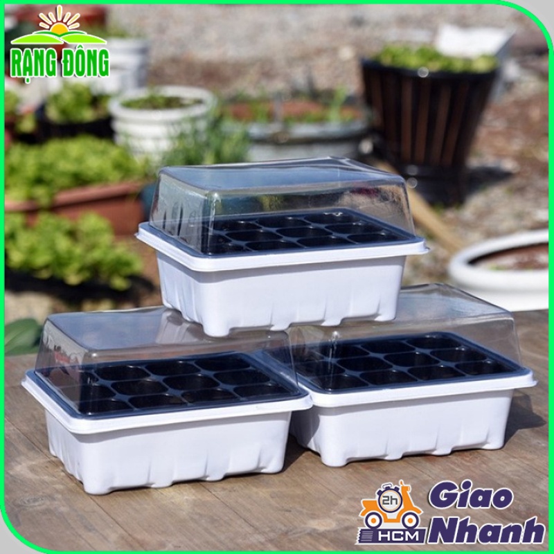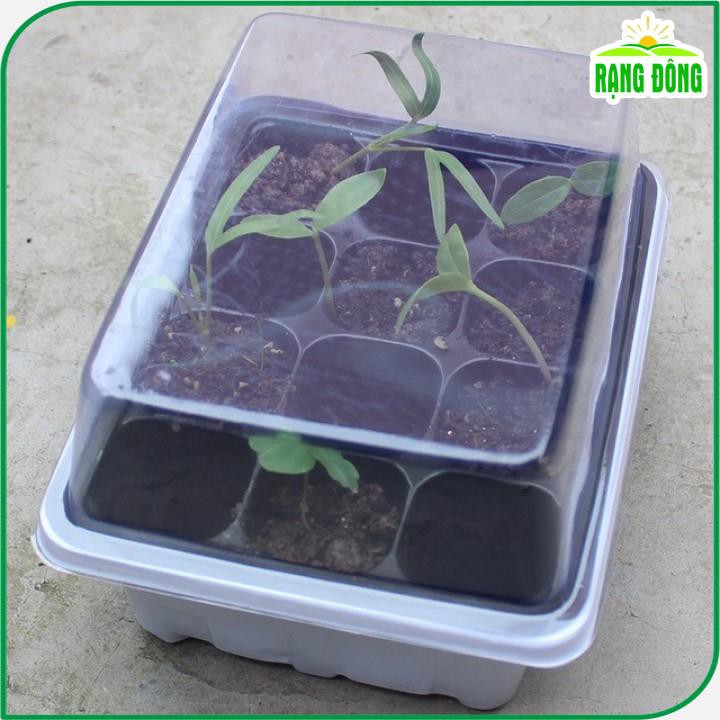 Vỉ Ươm Hạt Giống 12 Lỗ Có Nắp Đậy Tránh Côn Trùng - Độ Bền Cao, Tái Sử Dụng Nhiều Lần - Hạt giống Rạng Đông