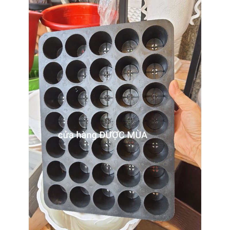 khay nhựa dùng ươm cây con, hàng rất dày và chắc chắn. khay có 35 lỗ.kích thước khay: dài 35cm, rộng 25,5cm, cao 4,5cm.