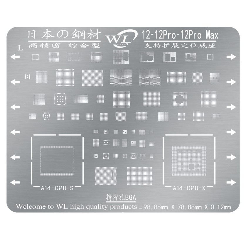 Vỉ WL làm chân ic cho iPhone 12, 12Pro và 12Pro MaxVỉ đủ IC độ dày tiêu chuẩn 0.12mm