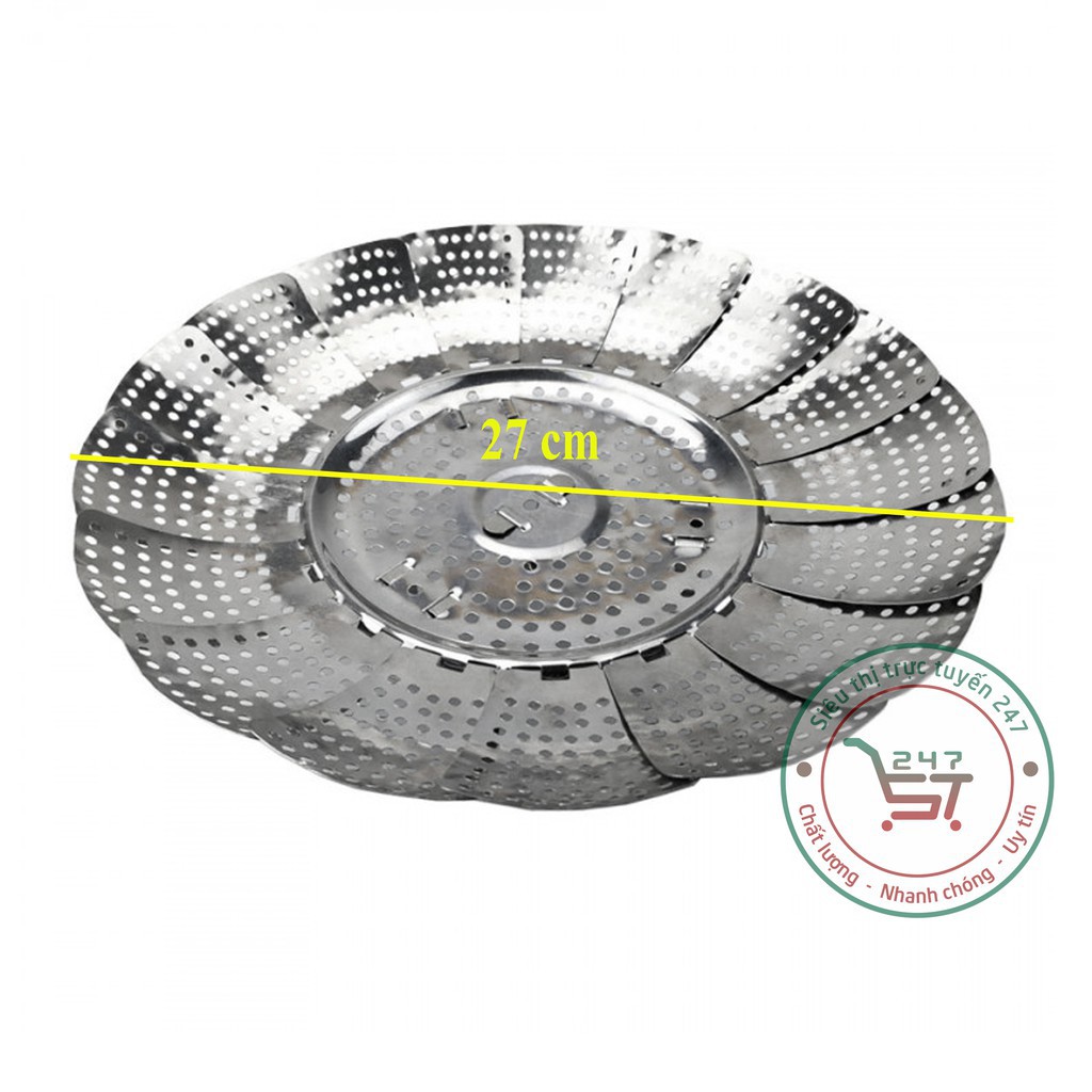 - Vỉ xửng hấp xòe inox được làm bằng inox sáng bóng không gỉ, dùng để hấp, hâm nóng các món ăn dễ dàng, có thể vừa với nhiều loại nồi ( nồi từ 17cm trở lên)- Màu sắc trắng bạc, sáng bóng lịch sự