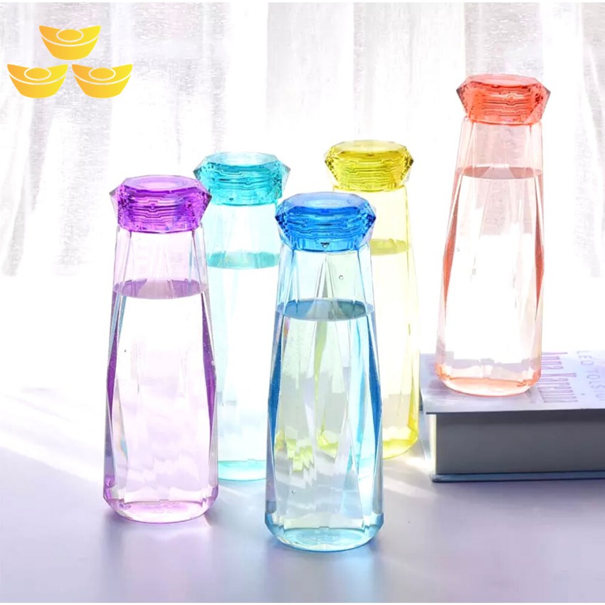 Nhà cửa & Đời sống > Bộ đồ bàn ăn > Bình nước & phụ kiện || [Video+ảnh] Bình chai đựng nước thủy tinh 450ml Kim Cương nhiều màu sắc làm quà tặng dễ thương ML-A007Còn hàng