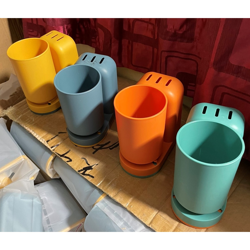 - Cốc nước súc miệng cài ngược, giữ cho cốc luôn khô ráo, màu sắc tương phản bắt mắt