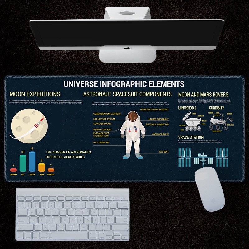 ♻️ Đặc điểm kỹ thuật:- Tên sản phẩm: Lót chuột "Phi Hành Gia" chống nước 80x30 dày 3mm siêu dễ thương