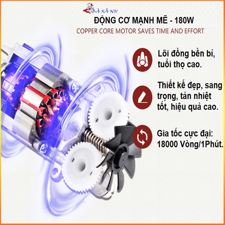 ⭐️ Máy có công suất cực mạnh 180W, Trên máy có 07 tốc độ đánh khác nhau, giúp bạn dễ dàng điều chỉnh mức độ đánh thích hợp trong quá trình sử dụng. Trong đó chức năng gia tốc nhanh và an toàn cho phép tốc độ tăng tối đa tùy ý.