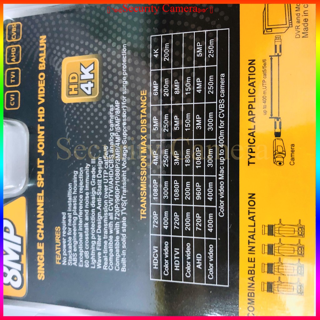 * Dùng để chuyển đổi dây mạng cat5/cat6,... thành cáp đồng trục liền nguồn* Góp phần làm tăng độ nét của tín hiệu camera