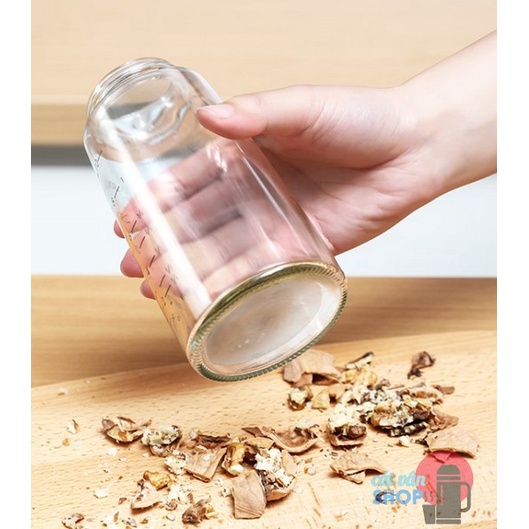 Thân bình bằng thủy tinh trong suốt có vạch chia dung tích , dễ dàng khi đo lường trong nấu ăn , chế biến thực phẩm.