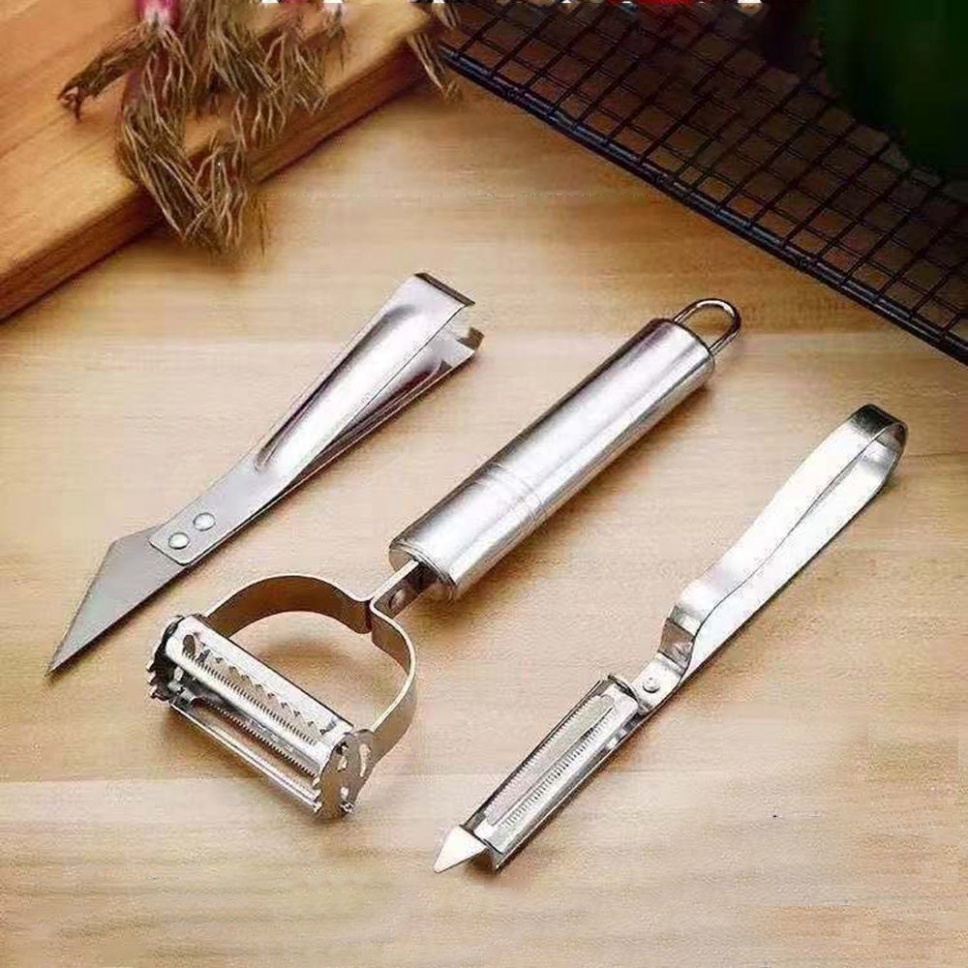 ĐẶC ĐIỂM SẢN PHẨM- Bộ 3 dao nạo + dao gọt hoa quả + dao tỉa inox đa năng