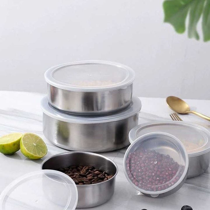 ĐẶC ĐIỂM SẢN PHẨM- Set 5 bát inox lạnh có nắp, dùng để đồ ăn trong tủ lạnh vừa sạch,giúp bảo quản thức ăn an toàn lại rẻ nữa.