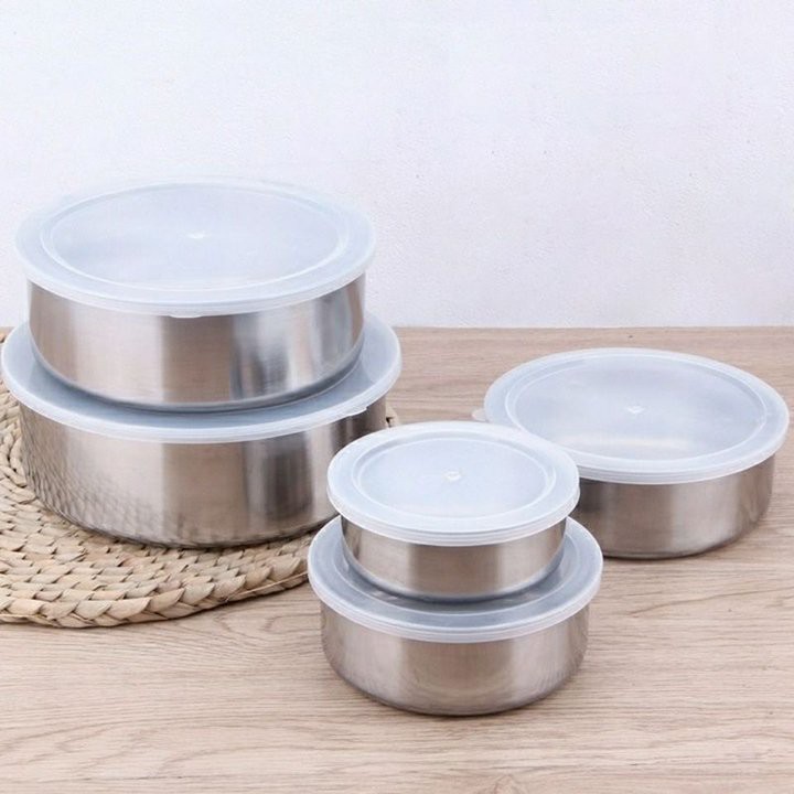 - Bộ 5 bát inox cao cấp có nắp đậy với thiết kế thông minh với bát được làm bằng chất liệu inox không rỉ