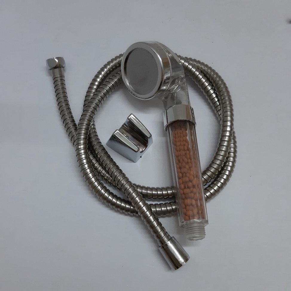 – Bộ sản phẩm gồm : 1 vòi hoa sen + 1 dây cấp nước Inox304 dài 1.5m chống xoắn + 1 giá đỡ vòi hoa sen